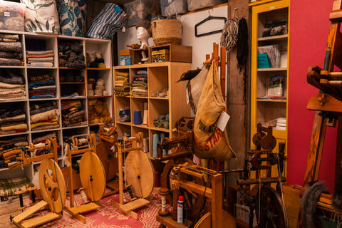 Hou je van ambachtelijk handwerken, wil je leren spinnen, vilten, breien, haken of weven: kom meewerken in onze Wolkeamer en laat je verrassen door wol.